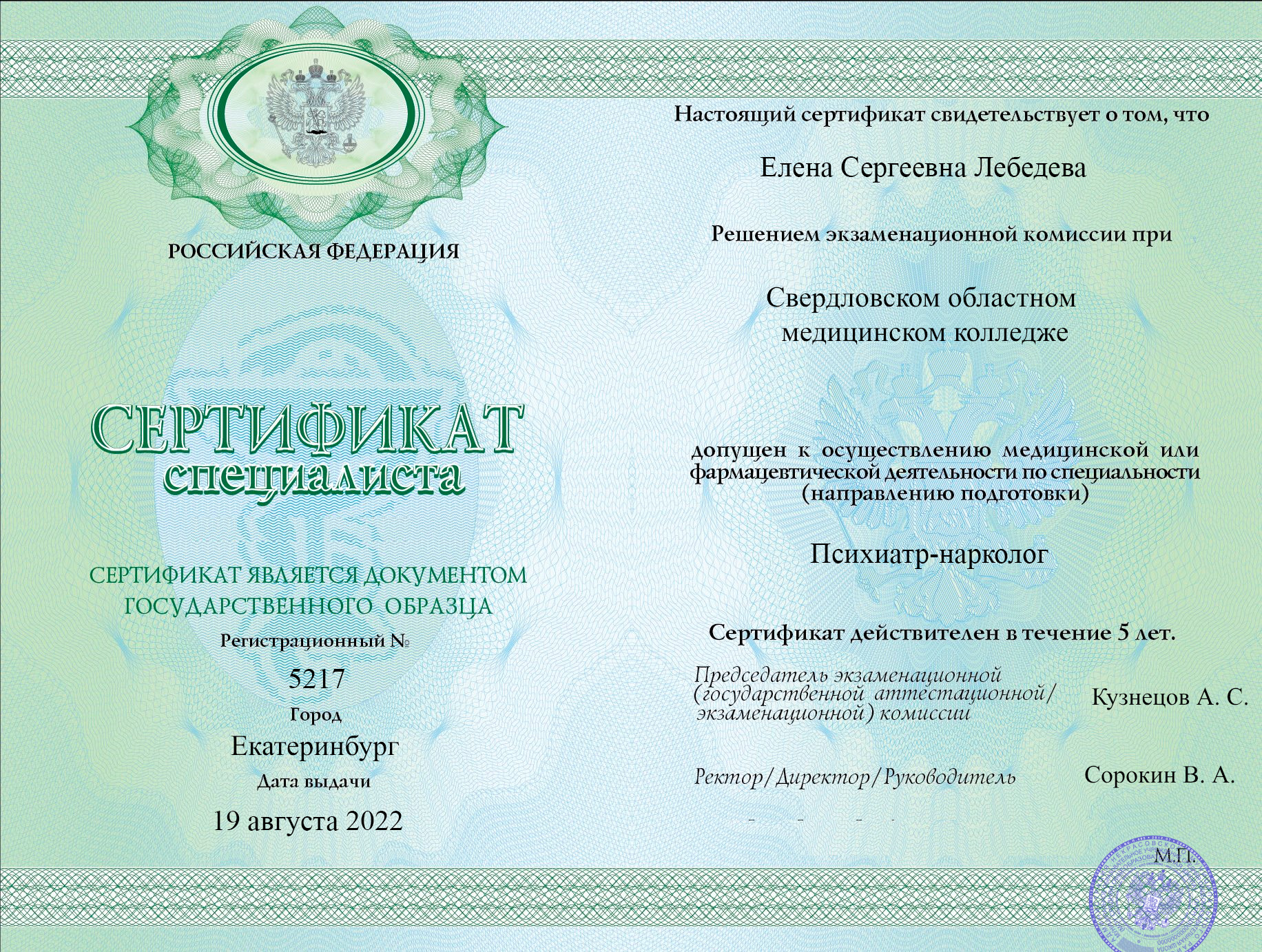 Елена Сергеевна Лебедева врач нарколог клиники доктора Стукаловой в Бичуре
